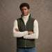 - Zip-through sleeveless design with a high collar